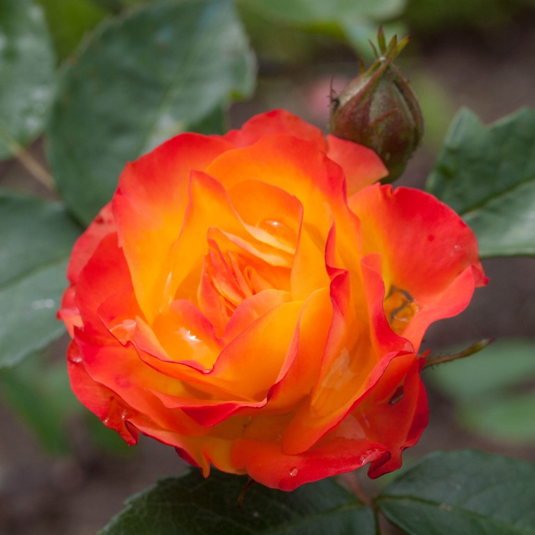 Куст компактный и густой, достигающий в высоту 40-60 см и в ширину 50 см. На крепких побегах формируются среднего размера, насыщенного зеленого цвета листики с глянцевой поверхностью. Облиственность у растения довольно сильная. Однако несмотря на это, в период активного цветения кусты почти полностью покрыты соцветиями, за счет чего практически не видно листву. Желто-оранжевые с малиновыми полосами бутоны имеют овальную, заостренную форму. По мере распускания цветка окрас лепестков становится более желтым с красно-оранжевыми краями. Форма цветка – от чашевидной до розетковидной. Оттенки плавно переходят один в другой. Цветки махровые, диаметром 4-6 см, в каждом от 25 до 45 лепестков. На одном стебле образуется 5-10 цветков, собранных в соцветия, покрывающие весь куст. Сорт обладает слабым ароматом, но очень приятным, с легкими пряными нотками чайного дерева и масла иланг-иланга. Посадка саженцев полиантовых роз соответствует правилам высаживания обычных. С той лишь разницей, что они не такие требовательные к месту посадки и прекрасно растут в полутени. Это даже лучше, чем солнцепек. Им не страшна избыточная влажность, но это не значит, что их надо специально высаживать в подтапливаемых местах, с высоким залеганием грунтовых вод.